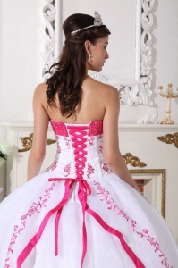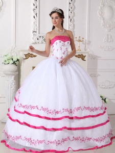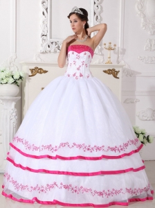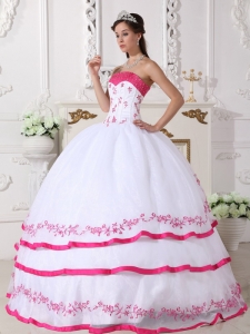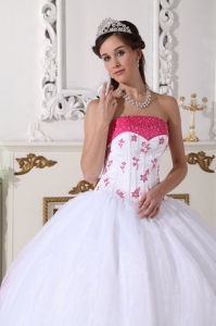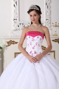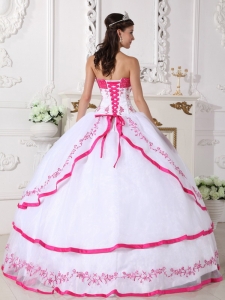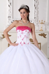 Impression White and Hot Pink Quinceanera Dress Strapless Organza Beading and Embroidery Ball Gown