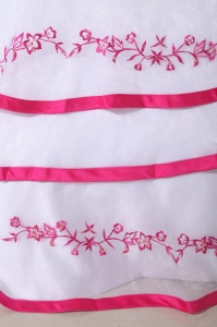 Classic and elegant ball gown is modern and stylish. This elegant quinceanera dress with lace up features dazzling beading and lovely flora embroidery appliques and a exquisite white long length skirt with many tiers adorned with red hem and flora embroidery abound the skirt. You will won the standing ovation in this fantastic dress!