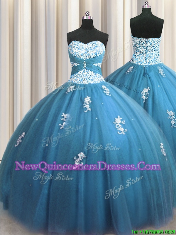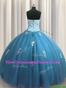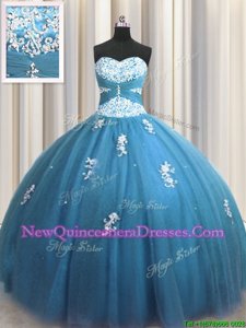 Sumptuous Teal Lace Up Sweetheart Beading and Appliques Quinceanera Gowns Tulle Sleeveless