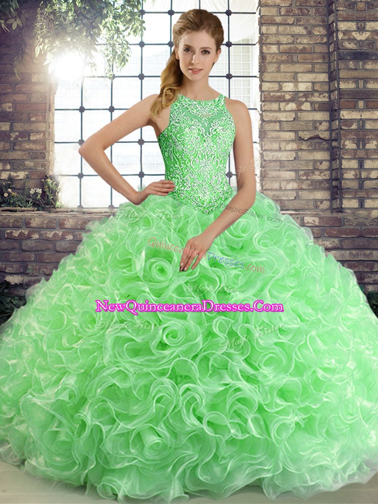 Superior Green Sleeveless Beading Floor Length Sweet 16 Dress