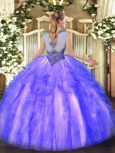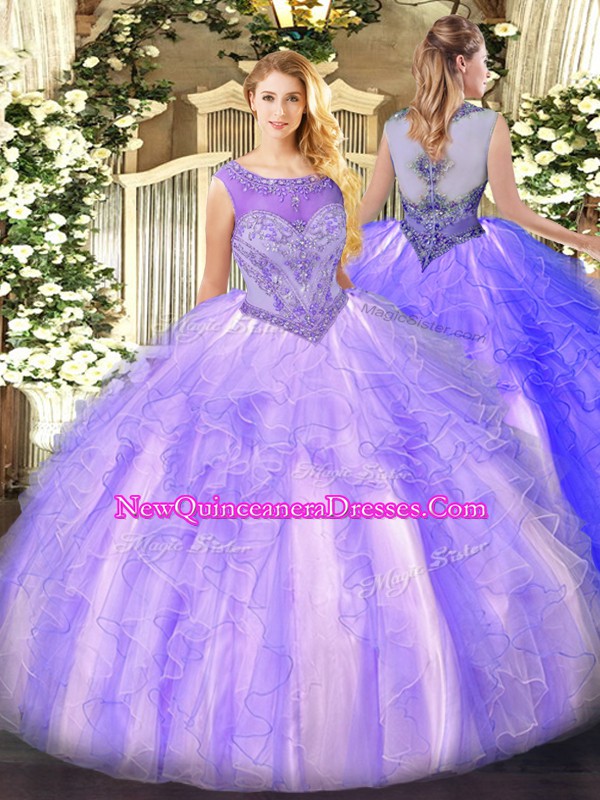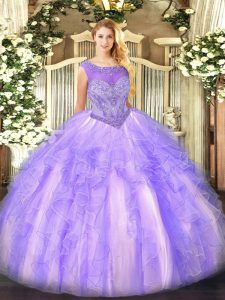Superior Scoop Sleeveless Organza Ball Gown Prom Dress Beading and Ruffles Lace Up