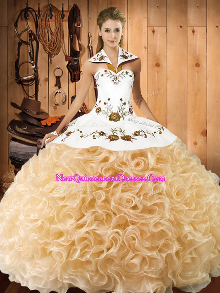Sweet Champagne Ball Gowns Embroidery 15th Birthday Dress Lace Up Fabric With Rolling Flowers Sleeveless Floor Length