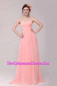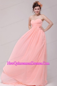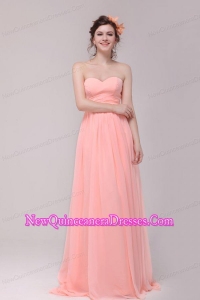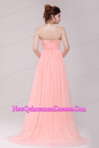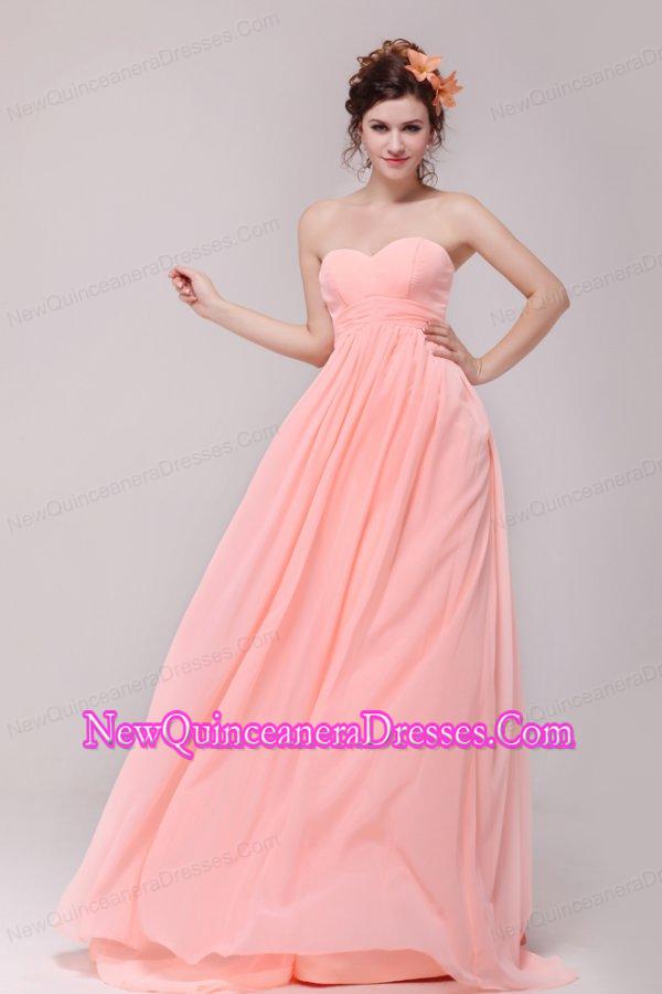 Sweetheart Ruche Chiffon Empire Peach Dresses for Dama with Brush Train