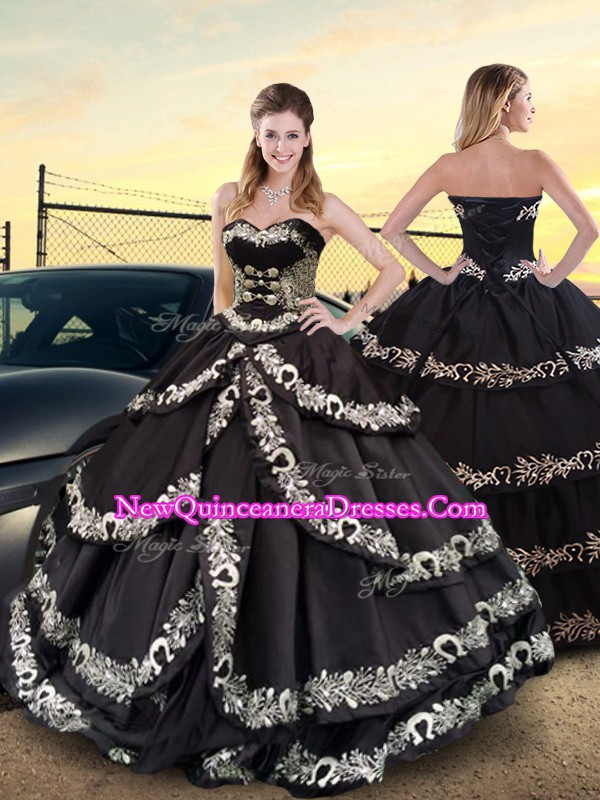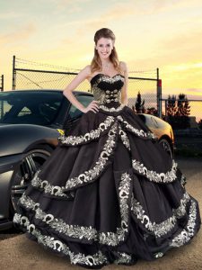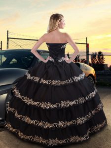 Sweetheart Sleeveless Taffeta Quince Ball Gowns Embroidery and Ruffled Layers Lace Up