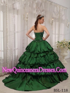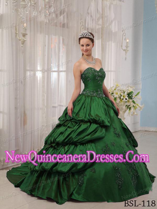 Taffeta Green Ball Gown Sweetheart Court Train Appliques Fashionable Quinceanera Dress