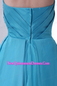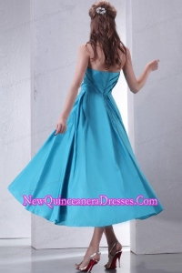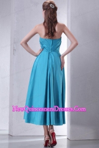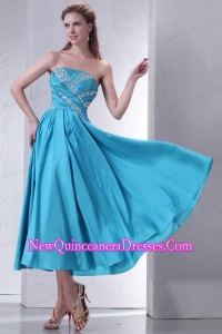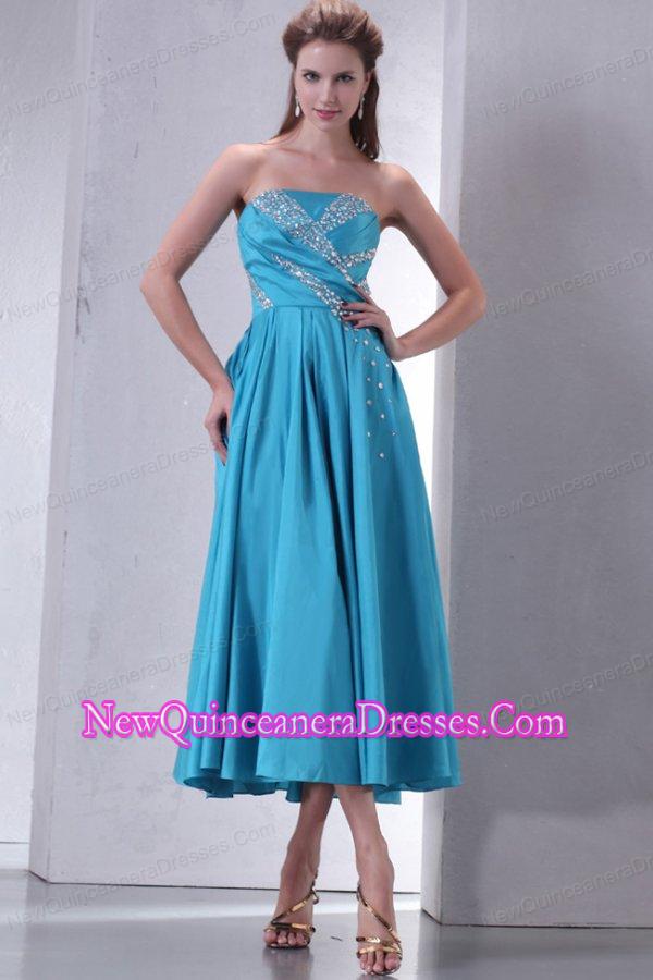 Teal Empire Strapless Tea-length Dama Dress for Quinceanera with Beading