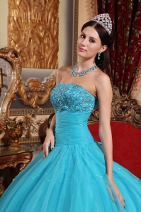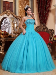 2013 2014 best seller quinceanera dress in teal, Popular Teal Quinceanera Dress Strapless Tulle Embroidery with Beading Ball Gown
