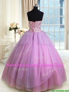 Three Piece Floor Length Ball Gowns Sleeveless Lilac Sweet 16 Dresses Lace Up