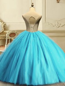 Latest Scoop Sleeveless Tulle Quinceanera Gown Appliques Lace Up