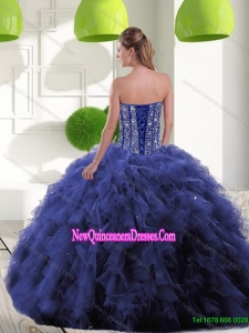 Trendy Navy Blue Quinceanera Gown with Beading and Ruffles for 2015