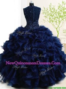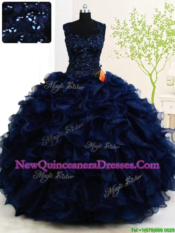 Trendy Straps Straps Spring and Summer and Fall and Winter Organza Sleeveless Floor Length Quinceanera Dress andBeading and Ruffles