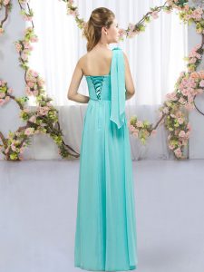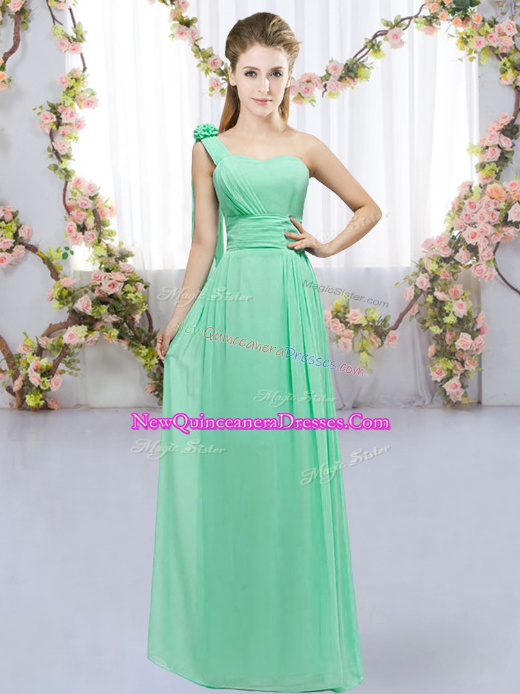Turquoise Quinceanera Court Dresses Wedding Party with Hand Made Flower One Shoulder Sleeveless Lace Up