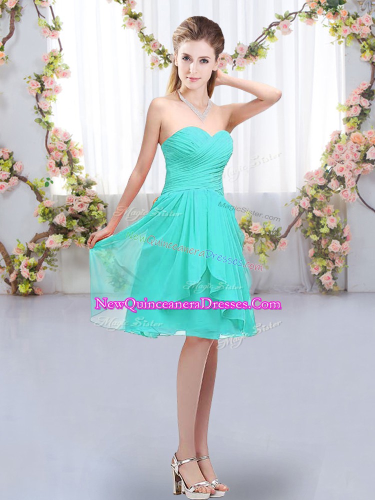 Turquoise Sleeveless Knee Length Ruffles and Ruching Lace Up Quinceanera Court of Honor Dress