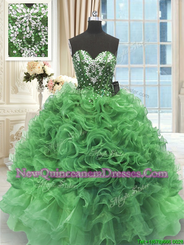 Unique Organza Sweetheart Sleeveless Lace Up Beading and Ruffles Sweet 16 Dresses inGreen