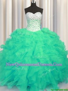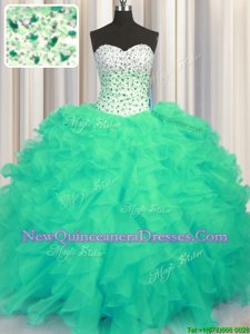 Vintage Turquoise Sweetheart Lace Up Beading and Ruffles Quinceanera Dresses Sleeveless