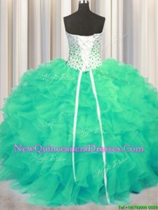 Elegant Sleeveless Beading and Ruffles Lace Up Quinceanera Gown