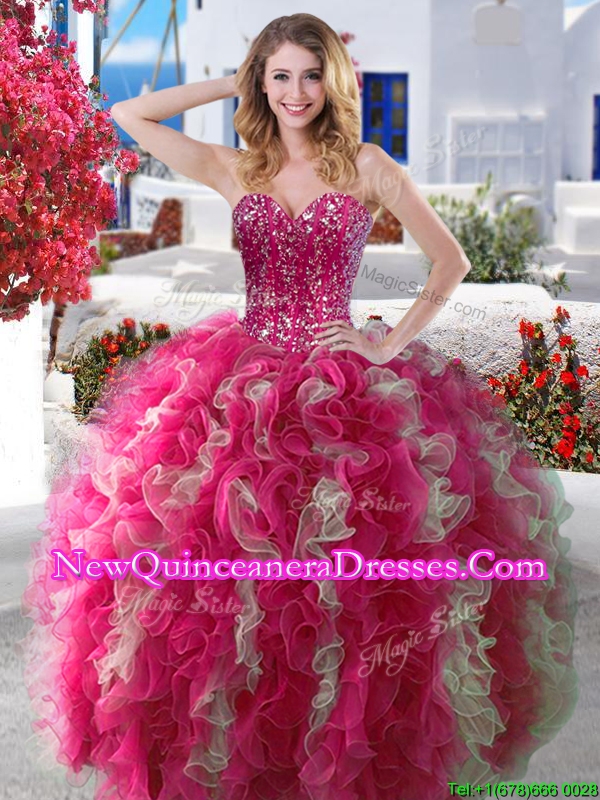 Visible Boning Beaded and Ruffled Quinceanera Dress in Hot Pink