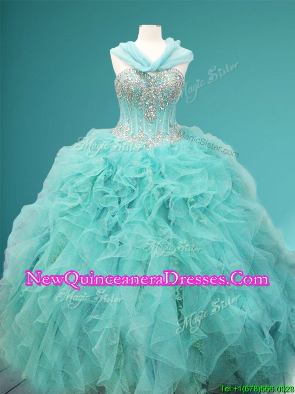 Visible Boning Beaded and Ruffled Sweet 16 Dress in Apple Green