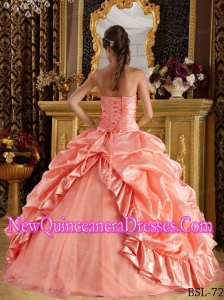 This amazing Watermelon quinceanera dress will have you feeling – and looking – like royalty. It features a strapless bodice that's embellished with pretty beadings and embroidery on it, which depicts a flower in full bloom on the bodice.It also boasts pleats design,which is a signal of elegance. The skirt is long and flowing freely. Just a classical quinceanera dress for your event.