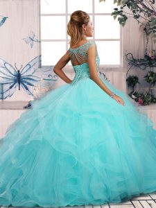 Orange Sleeveless Floor Length Beading and Ruffles Lace Up Sweet 16 Dress