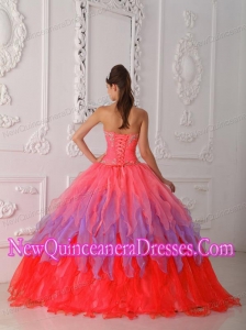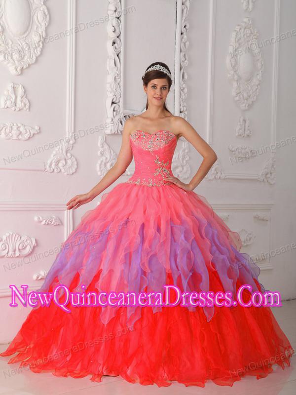 Sweetheart Organza Appliques Luxurious Quinceanera Dresses in Multi-colored