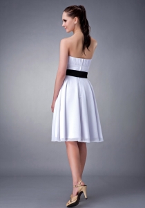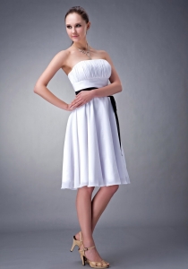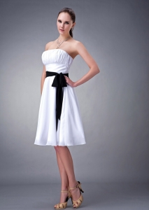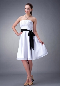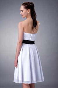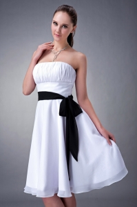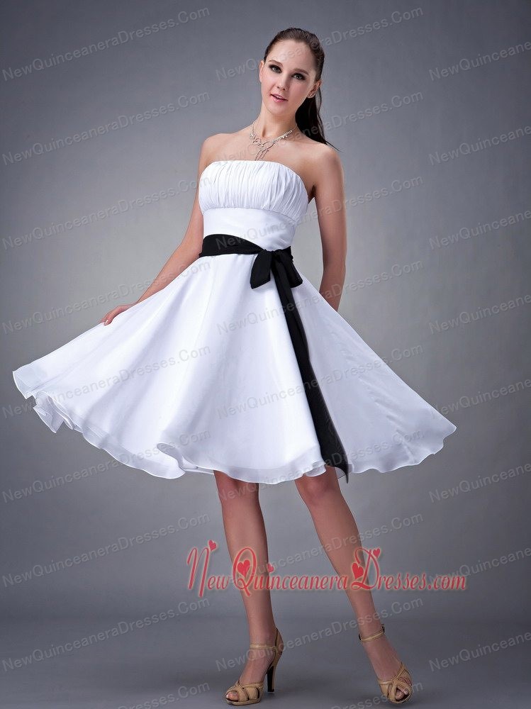 unique chiffon sash dama dress, White A-line / Princess Strapless Knee-length Chiffon Sash Dama Dress