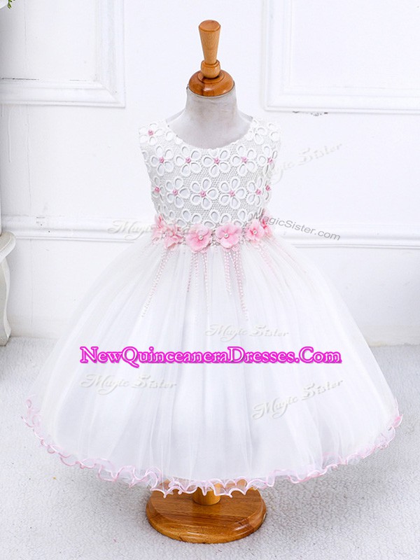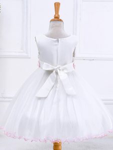 White Ball Gowns Organza Scoop Sleeveless Appliques Tea Length Zipper Kids Formal Wear