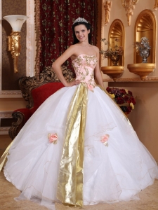 Lovely White Quinceanera Dress Strapless Organza Beading and Appliques Ball Gown