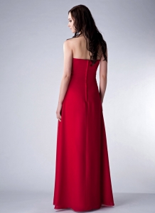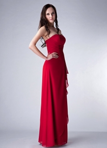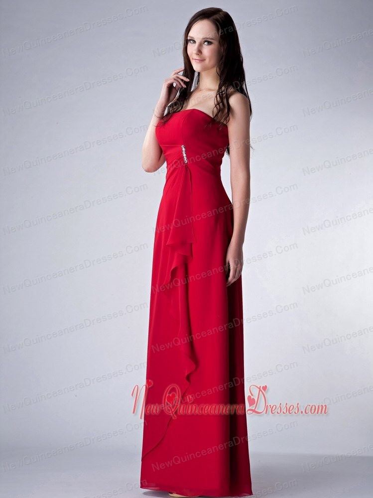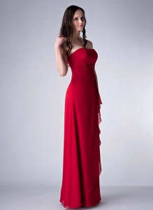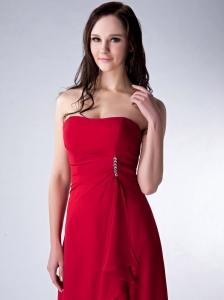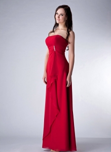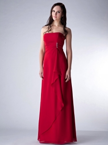 Wine Red Column Strapless Floor-length Chiffon Beading Dama Dress