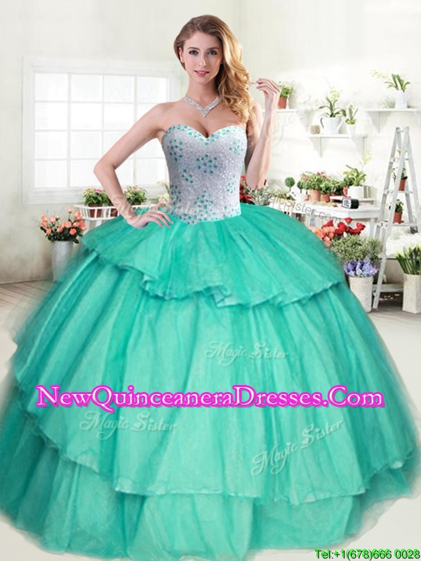 Gorgeous Straps Beaded and Ruffled Quinceanera Dress in Turquoise