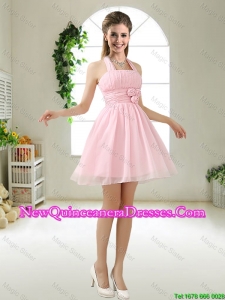 2015 apple green dama dresses with hand made flowers,