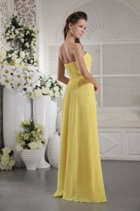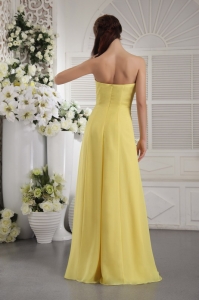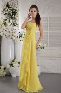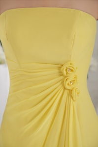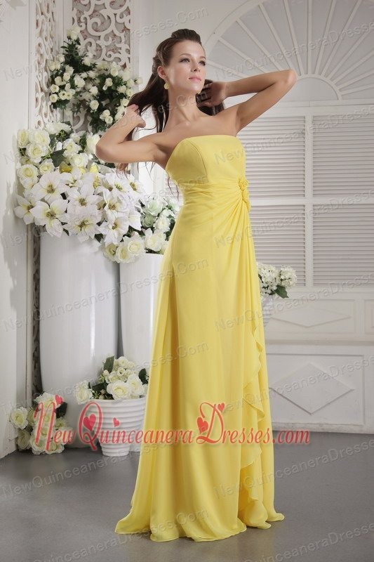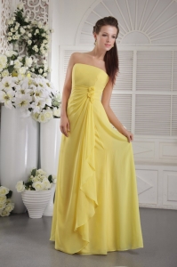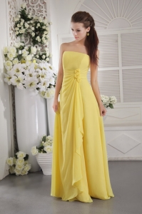 Yellow Empire Strapless Floor-length Chiffon Hand Flowers Dama dresses