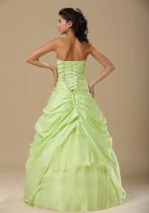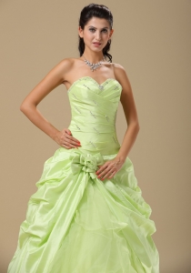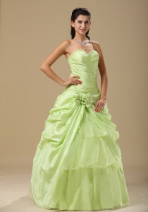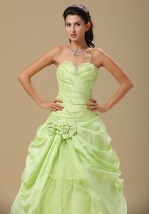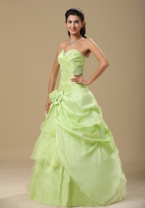 Yellow Green Hand Made Folwers and Ruched Bodice In Indianapolis For Quinceanera Dress